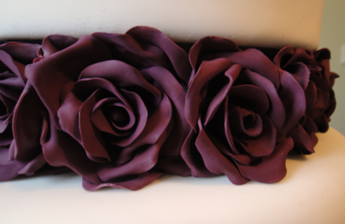 The roses are edible and were made to match the colour of the bridesmaids dresses